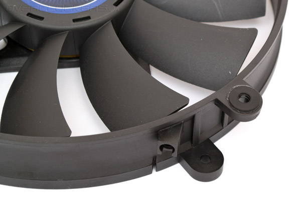 На крепежных ушках вентиляторов наклеены резиновые демпферные прокладки для гашения вибраций.