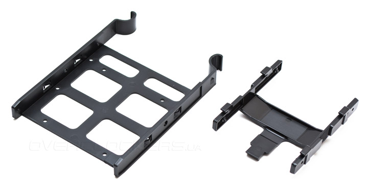 Никакой виброизоляции в лотках для 3,5″ и 2,5″ дисков не предусмотрено. В большую корзину можно поставить и 2,5″ накопитель при помощи маленьких винтов.