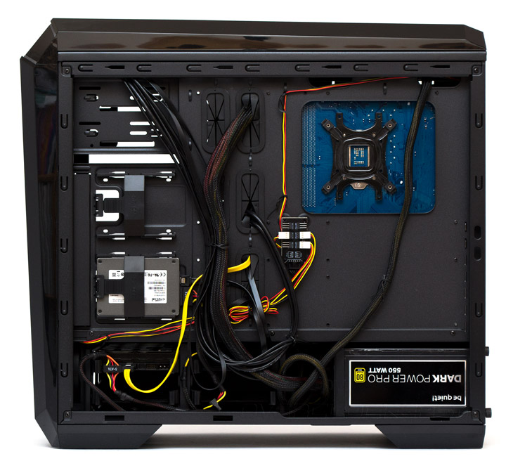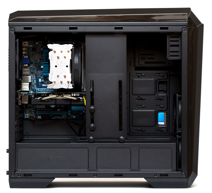 Сборка системы в корпусе Chieftec GP-01B-OP не вызывает затруднений благодаря его крупным габаритам и свободному внутреннему пространству. Укладка проводов тоже производится без проблем.