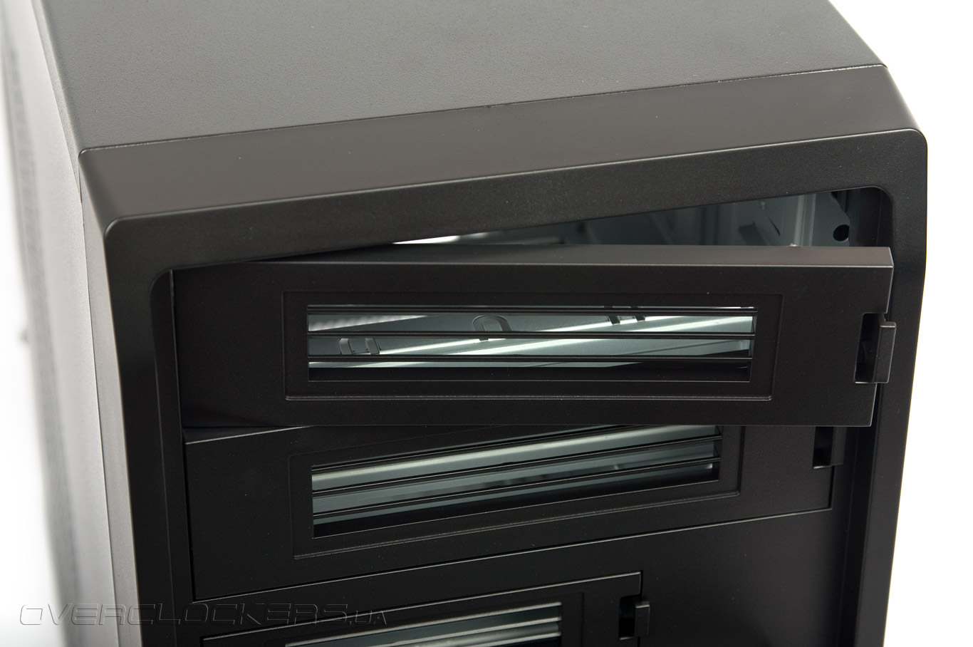 За ней находятся два отсека 5,25” и один 3,25”, оборудованные легкосъемными вентилируемыми заглушками.