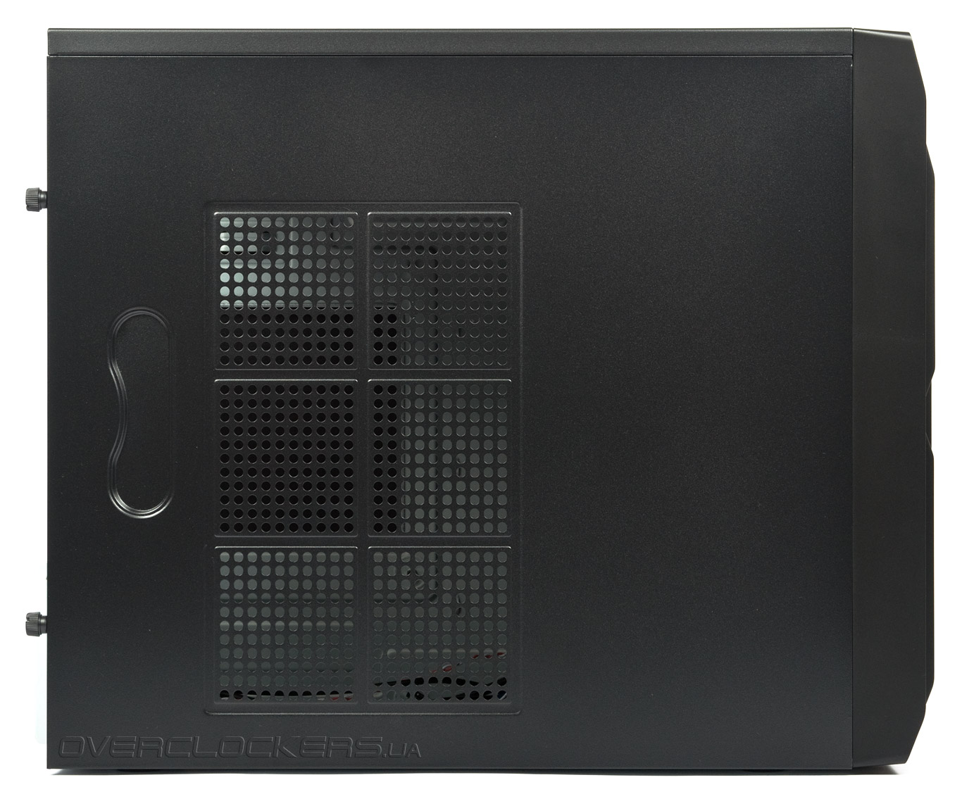 Обе дверцы закрепляются двумя винтами с удобной пластиковой головкой и снимаются стандартно путем сдвигания назад. Подгонка этих деталей к корпусу отличная, проблем при монтаже не возникает. На обеих выдавлены небольшие углубления сзади посередине, заменяющие собой ручки. Правая панель полностью глухая.