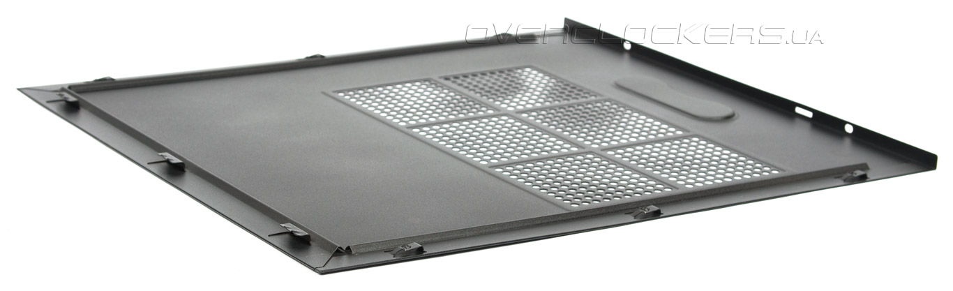 Панели взаимозаменяемые, поменяв их местами можно обеспечить слева защиту от пыли, а справа – вентиляцию обратной стороны сокета материнской платы. Верхняя панель полностью глухая и не имеет ничего примечательного.
