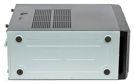 Нижняя панель также глухая, четыре круглые ножки из резины средней жесткости приподнимают корпус на 3 мм. Виброизоляция вряд ли получится, а вот защита от царапин обеспечена.