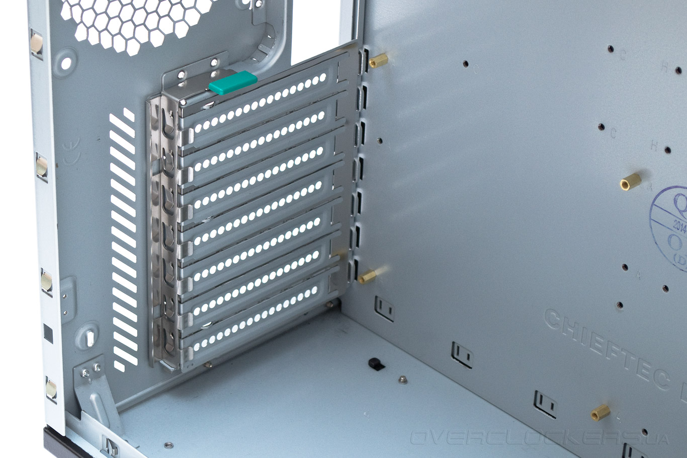 Для фиксации плат расширения и их заглушек используется довольно странная Г-образная прижимная скоба. В целом удобно, но есть и проблема, поскольку при установке нескольких плат, нет возможности производить с ними манипуляции индивидуально, особенно в вертикальном положении.