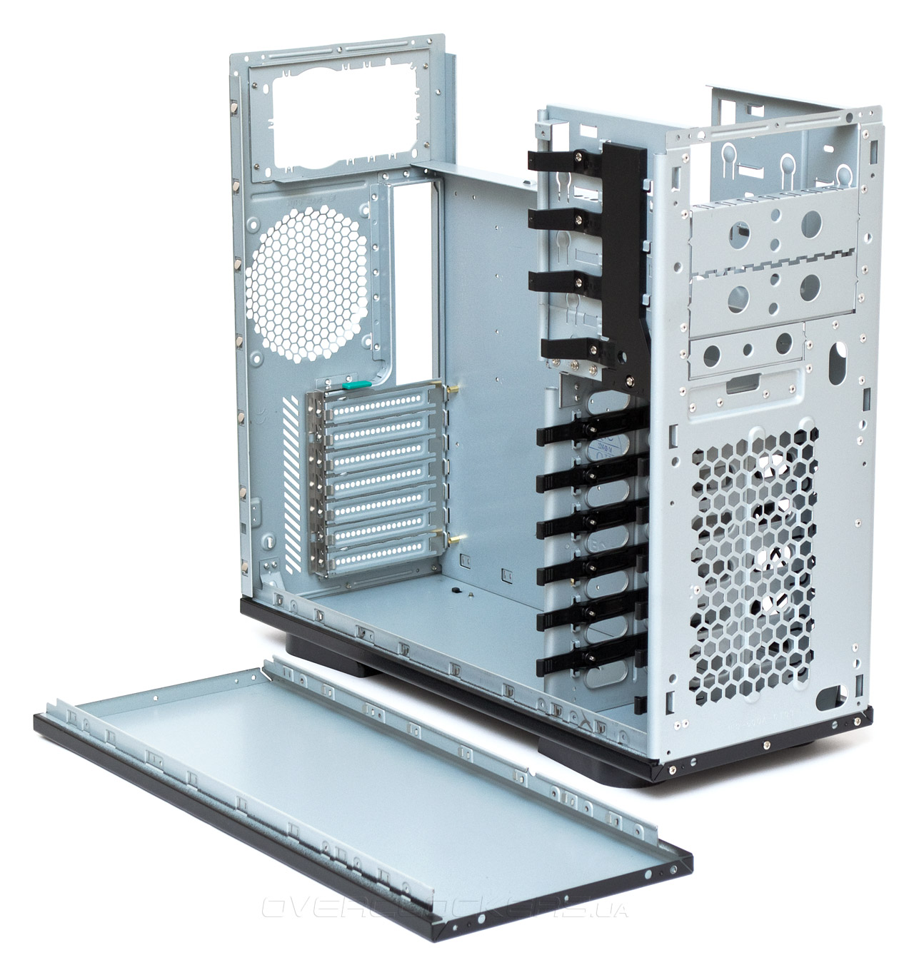 Спешу обрадовать и любителей моддинга. Верхняя панель корпуса съемная. Для демонтажа необходимо выкрутить десяток винтов по ее периметру. При обычной сборке системы данное действие явно лишнее.