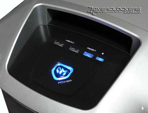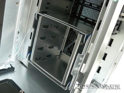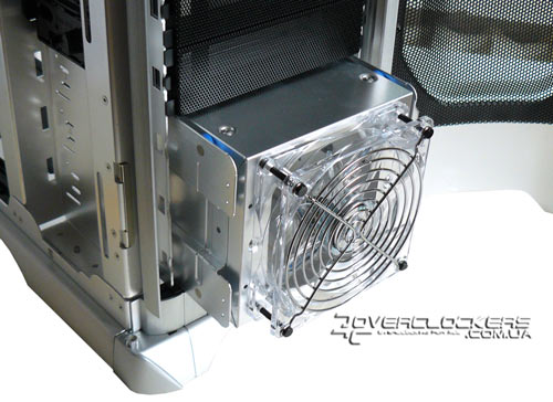 В верхней части корпуса есть кассета для "сто двадцатки", которую можно заменить на корзину со светодиодной подсветкой под винчестер WD Raptor X.