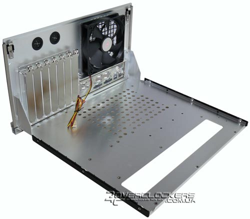 Поддон рассчитан на установку исключительно ATX-совместимой платы, что и отличает эту модель от RS-830. Кроме того, основание поддона имеет множество отверстий в районе расположения процессора и значительный вырез с краю.