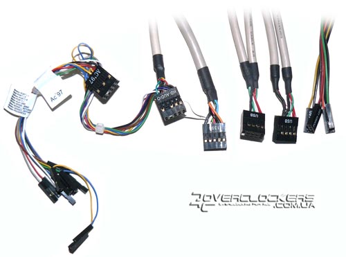 Количеству всевозможных разъемов вправе позавидовать многие решения от других производителей. Кроме обычного набора для подключения FrontPanel, имеется два разъема USB на четыре порта, один FireWire и целых четыре варианта подключения звукового тракта: HD Audio и AC’97 как разъемами, так и "россыпью".