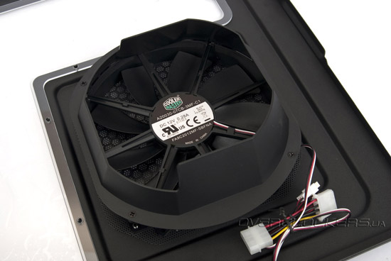 Рядом с акриловым окошком, с внутренней стороны, крепится 200-мм вентилятор без подсветки.