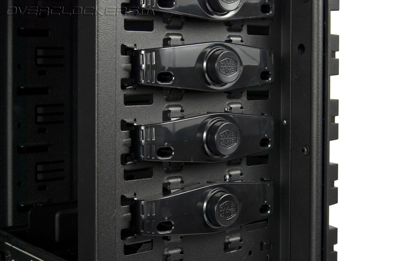 Cooler Master HAF X не только готов принять «на борт» большое число комплектующих, но и допускает установку крупногабаритных узлов ПК, для которых необходимо много свободного пространства и интенсивный обдув. Помимо материнских плат форм-факторов Mini-ITX, microATX, ATX и Extended ATX заявлена возможность установки плат XL-ATX. Так, флагманское решение Gigabyte GA-X58A-UD9 для процессоров LGA1366 имеет линейные размеры 345 x 262 мм. Соответственно, количество отсеков для карт расширения достигает 9 ед.