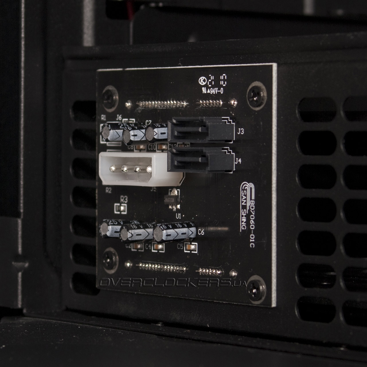 Под «крышей» предусмотрены посадочные места для двух 200-мм вентиляторов, один из которых поставляется вместе с корпусом. Таким образом, общее число комплектных «карлсонов» составляет четыре единицы.