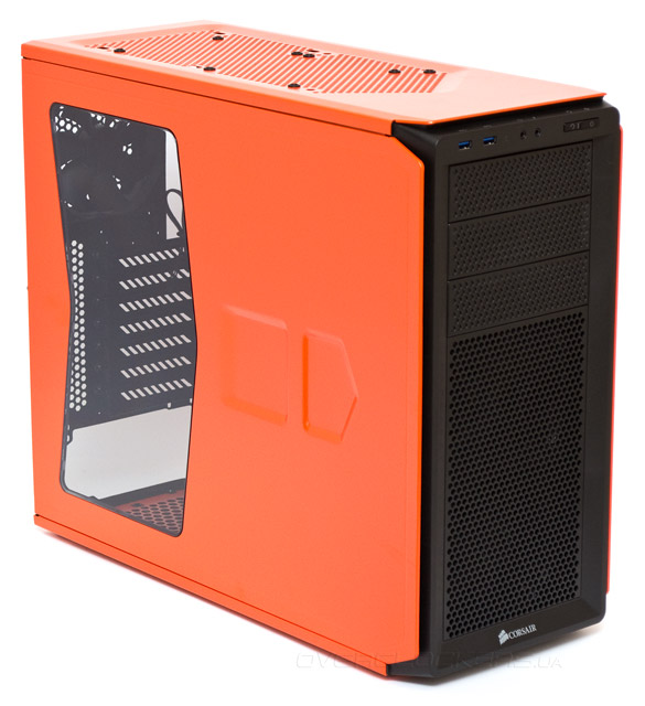 Дизайнерское бюро Corsair — одно из немногих, продолжающих сегодня выпускать уникальные по экстерьеру и интерьеру модели, в то время как многие фирмы просто покупают готовые проекты шасси, заменяя на них только лицевые панели и логотипы. В бюджетный по своей сути корпус компании удалось привнести изюминку дизайна, который делает его дороже на вид, чем есть на самом деле. Срезанные передние грани боковых и верхних панелей, в которых как бы утоплена фронтальная панель, вызывают прямые ассоциации с космическим крейсером из какого-то фантастического телесериала.
