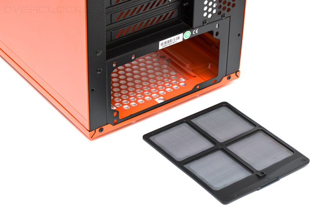 Блок питания можно ориентировать вентилятором вверх или вниз, а от попадания пыли он защищен хорошим съемным фильтром. Шасси потребуется приподнять, чтобы извлечь рамку фильтра, который не получится достать иначе из-за низкой посадки корпуса.