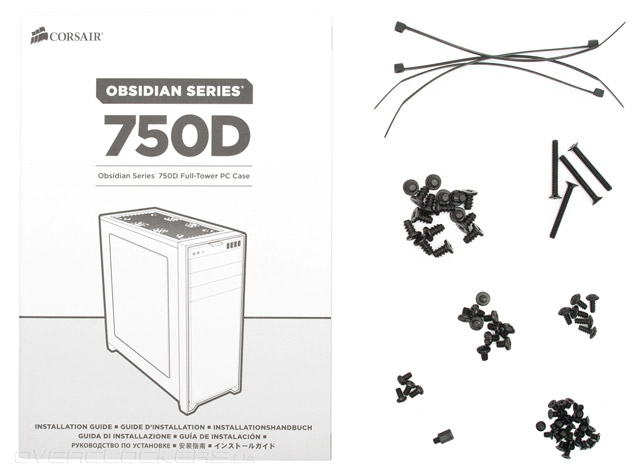 Небольшой комплект деталей содержится в скромной картонной коробке, зафиксированной в одной из салазок для жестких дисков. Внутри можно обнаружить следующее: