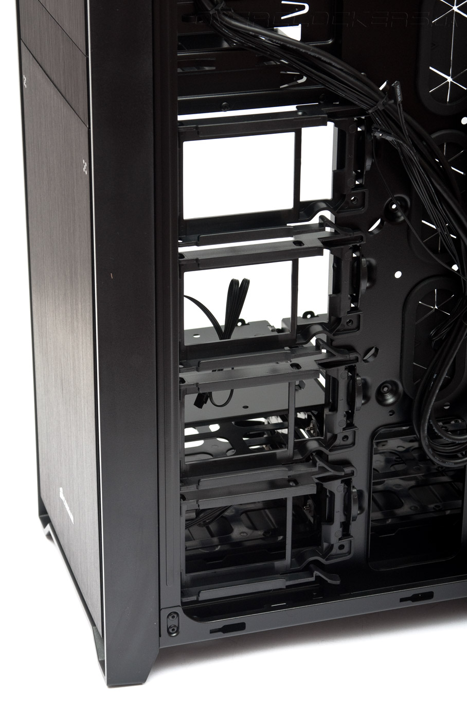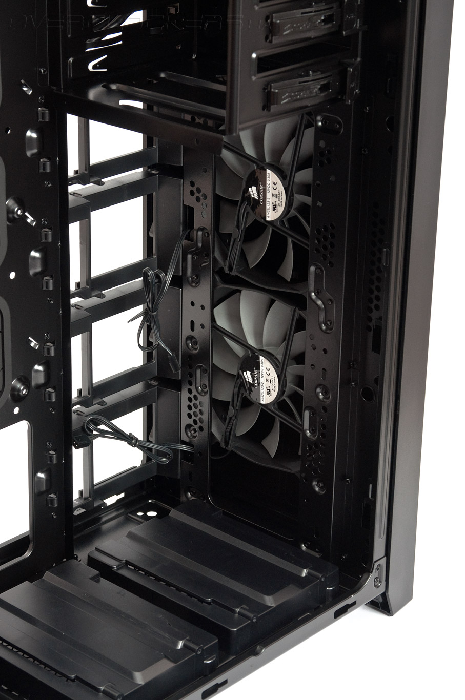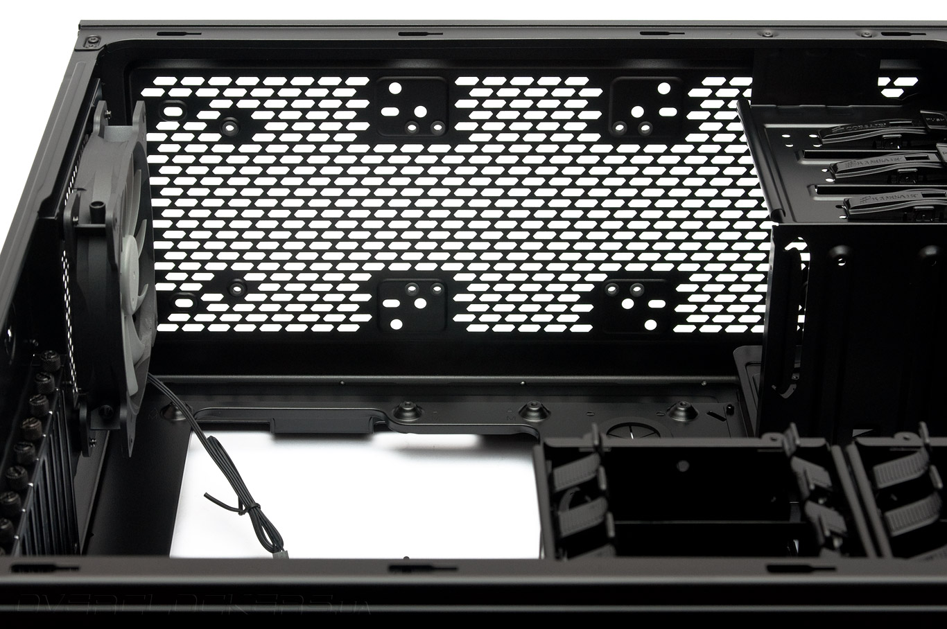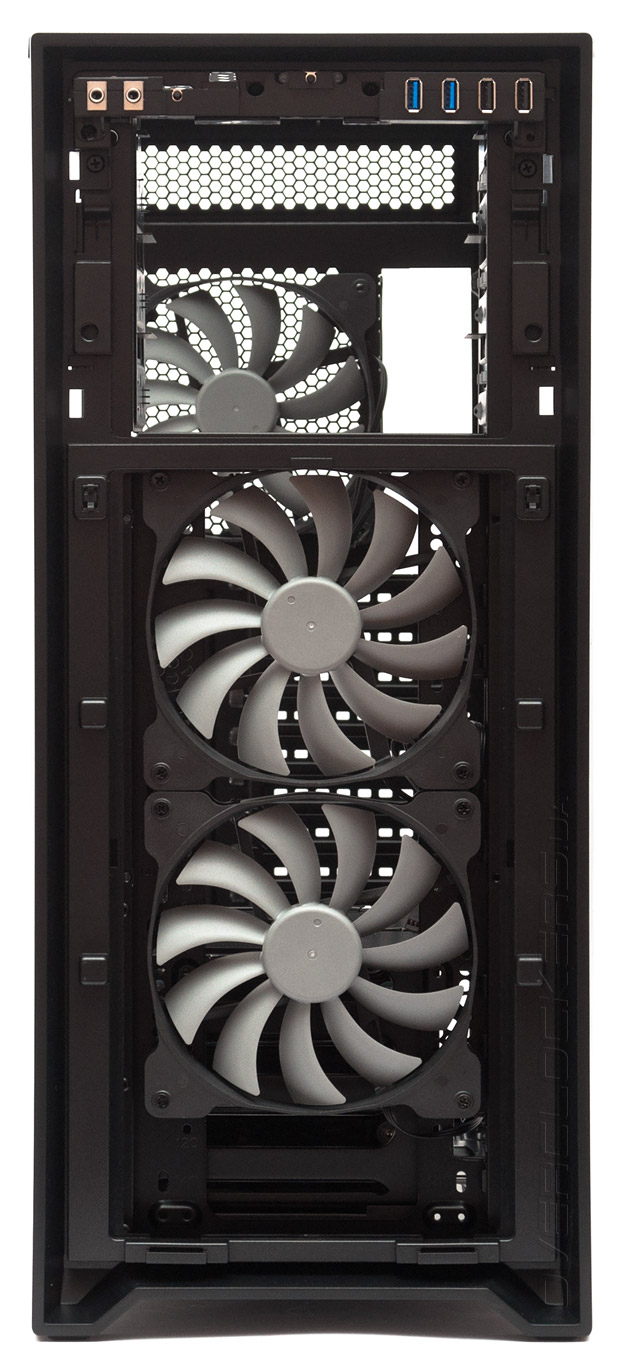 Запас места между верхней панелью и выступом поддона материнской платы составляет 70 мм. Посадочные отверстия вентиляторов снабжены антивибрационными резиновыми кольцами.