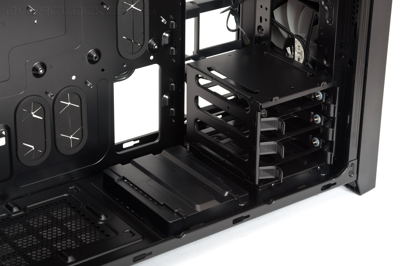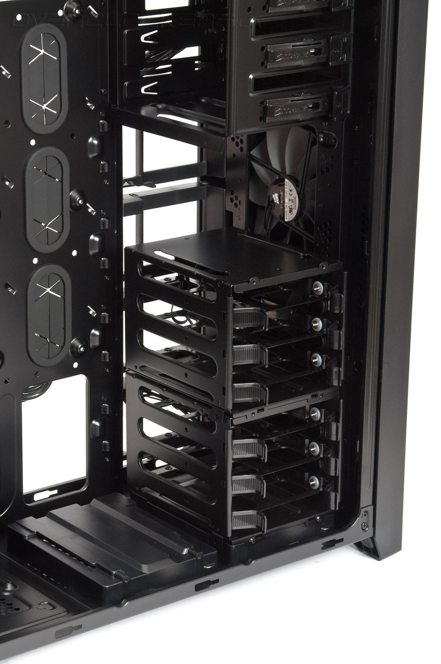 Две корзины для дисковых накопителей по умолчанию установлены подряд в передней нижней части корпуса.