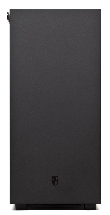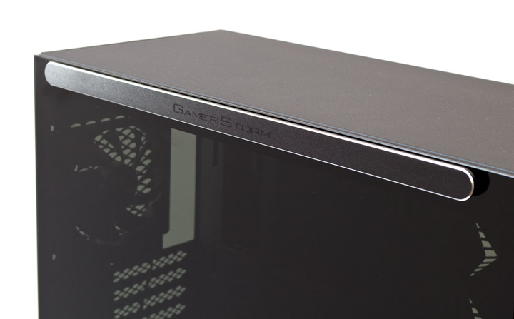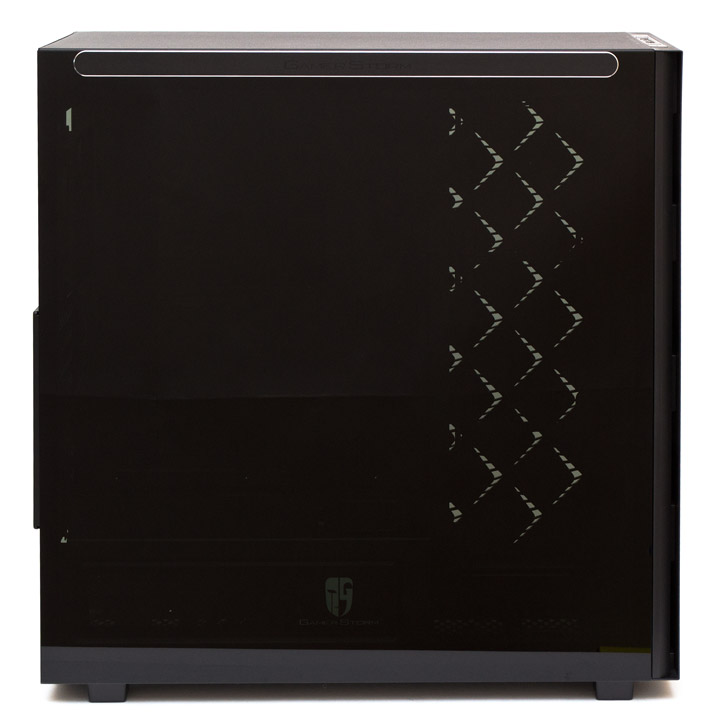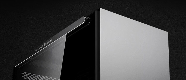 Macube 550 представляет собой черный ровный параллелепипед с подчеркнуто прямыми углами. Хотя, к слову, данная модель продается и в белом цвете. Общий вес корпуса ощущается сразу, как берешь его в руки, и составляет он 11,6 кг. Значительная часть этой массы получена за счет использования оцинкованной 0,8-мм стали в сочетании с приятной на ощупь шероховатой покраской. В общем, все твердо и надежно. Передняя панель является цельным ровным листом металла, с малозаметным логотипом Gamer Storm в нижней части. Вентиляционные отверстия находятся в боковых гранях.