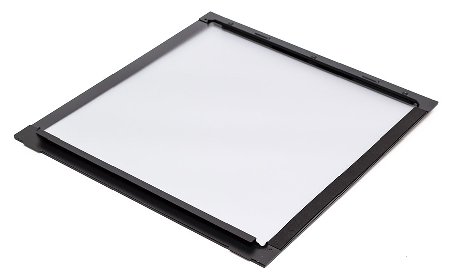 Толщина стекла составляет 4 мм. С обратной его стороны вверху и внизу приклеены металлические направляющие планки, а по бокам — мягкие прокладки.
