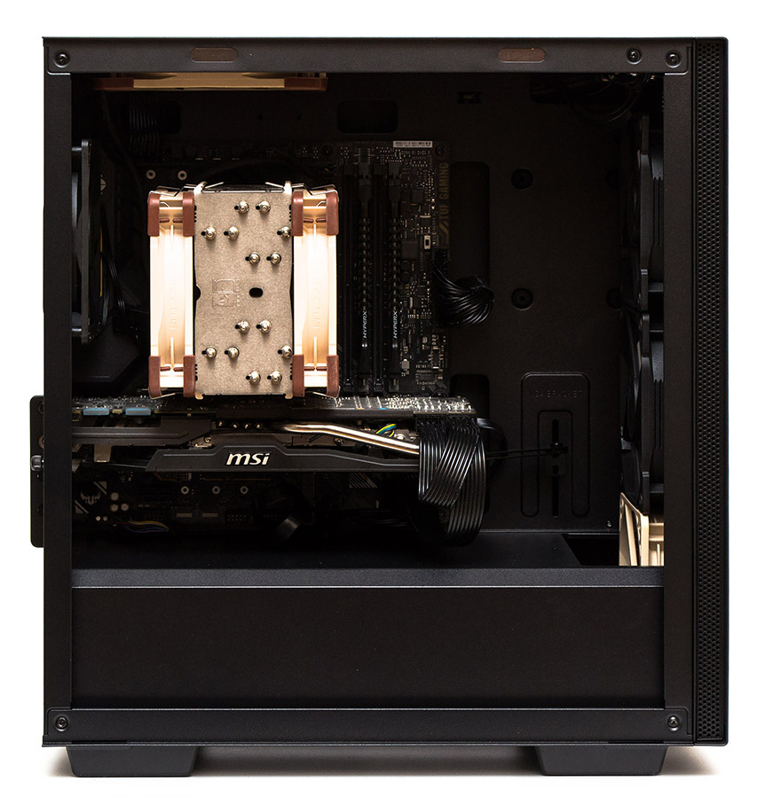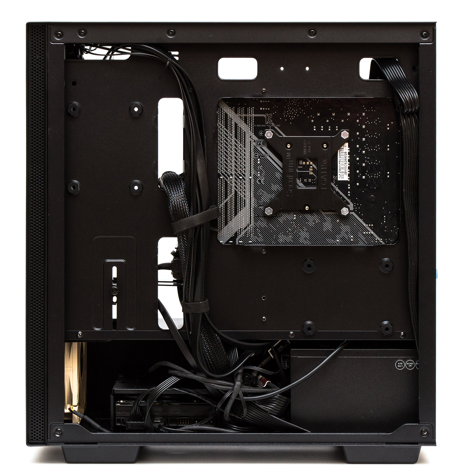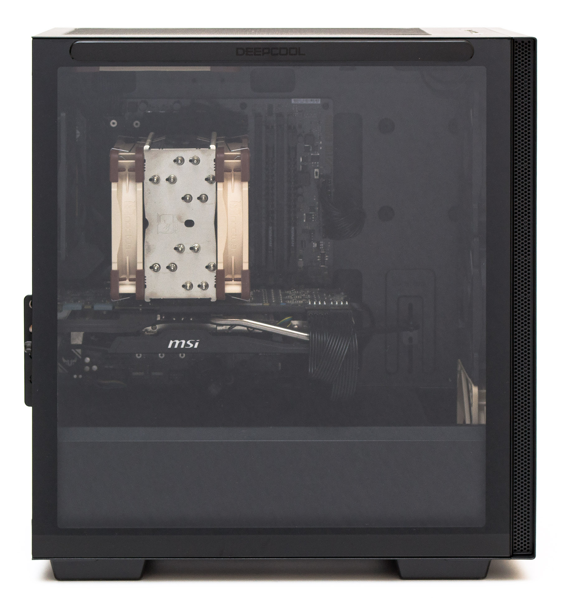 Содержимое системы отлично видно через боковое стекло даже без подсветки. Магнитное крепление левой панели позволяет получить мгновенный доступ внутрь, что очень удобно при замене памяти или видеокарты.