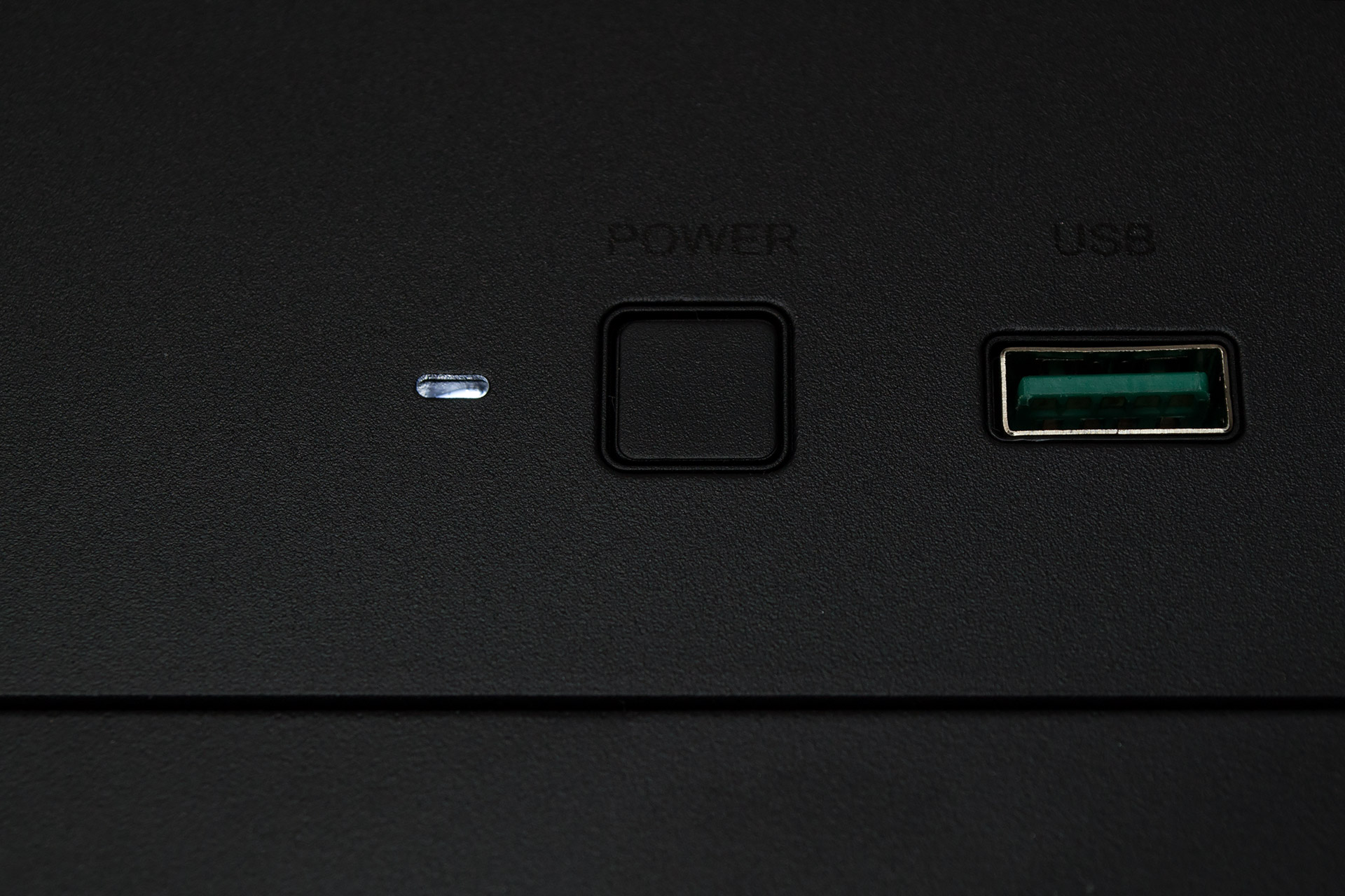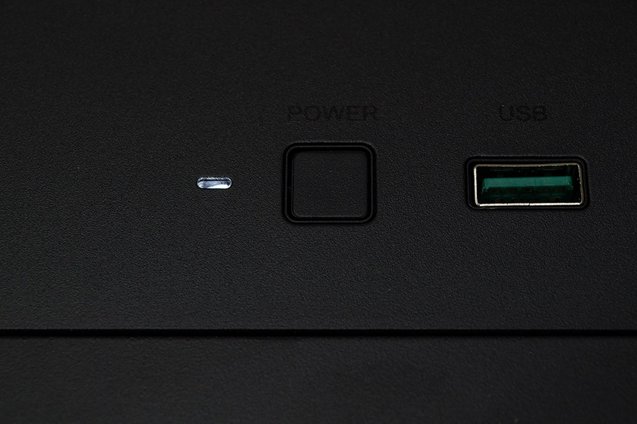 Белый индикатор активности накопителей очень яркий, если смотреть на него прямо. Но, при взгляде под углом, его свечение не раздражает глаза.