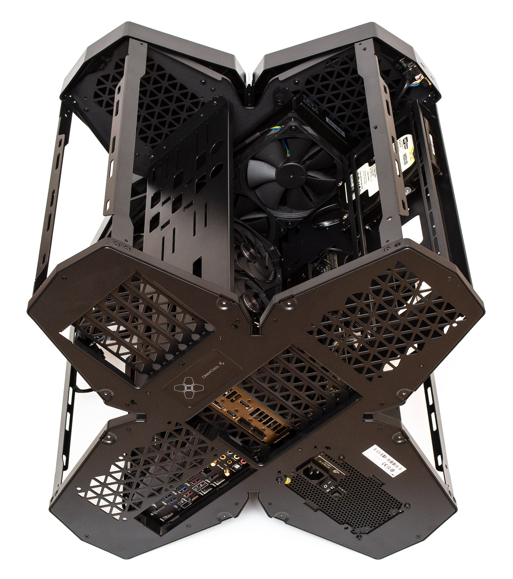 DeepCool Quadstellar Infinity увлекает своим дизайном, но для рядового пользователя он может быть не совсем удобным. Особенно если тот рассчитывает на стандартное воздушное охлаждение. Наилучшим образом этот корпус может проявить себя в авторских проектах с полностью кастомной системой СЖО для всех компонентов и видеокартами, установленными в отдельном отсеке.