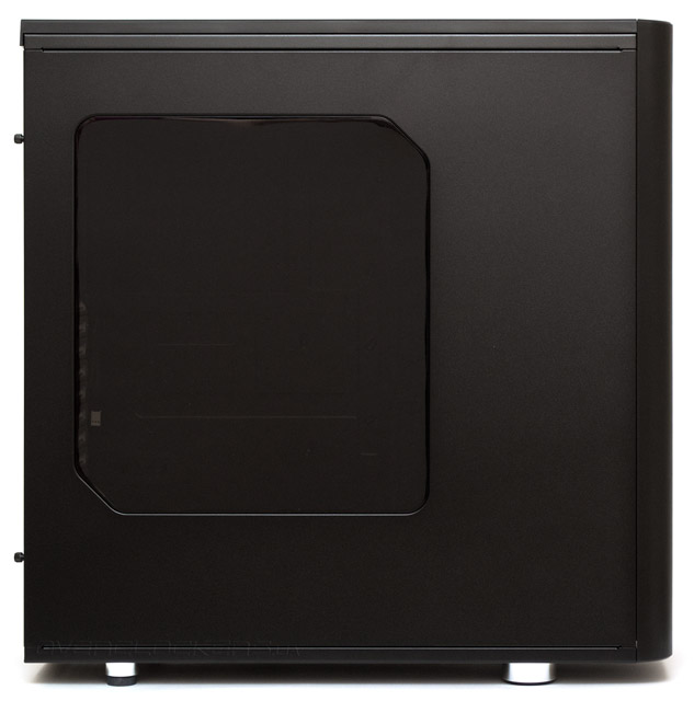 Окно сделано заподлицо с панелью, а за счет дымчатой тонировки практически сливается с металлом, поэтому выглядит очень красиво. Боковая панель имеет механизм открытия гильотинного типа и крепится двумя винтами с накатанной головкой. Ручек здесь нет, как, впрочем, и необходимости в них.