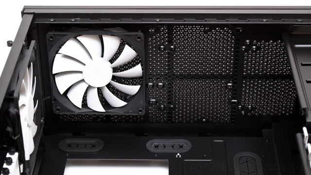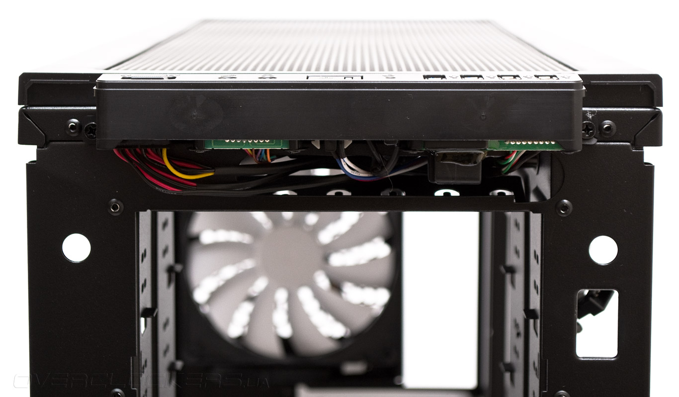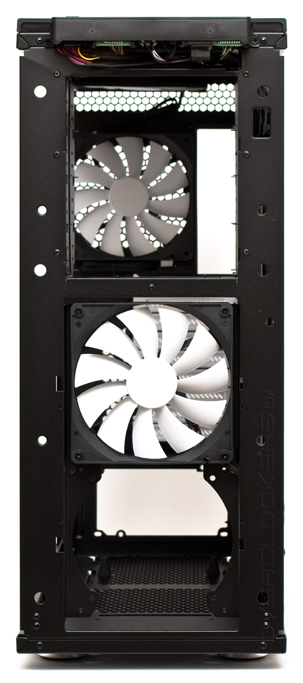 Посередине корпуса сделано посадочное место для одного 120- или 140-мм вентилятора, после установки которого возможная длина блока питания ограничивается 190 мм.