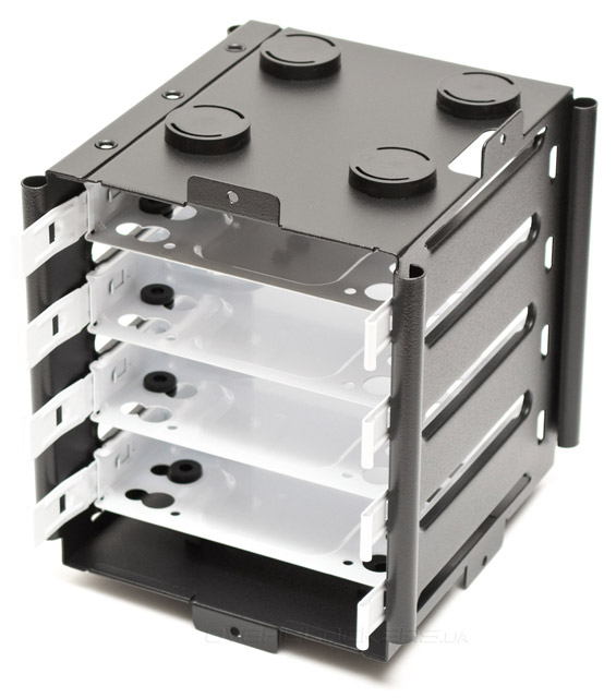Салазки позволяют закрепить с помощью винтов как 3,5″, так и 2,5″ накопители. Для жестких дисков предусмотрены виброизолирующие демпферы. При необходимости салазки можно зафиксировать винтами в самих корзинах.