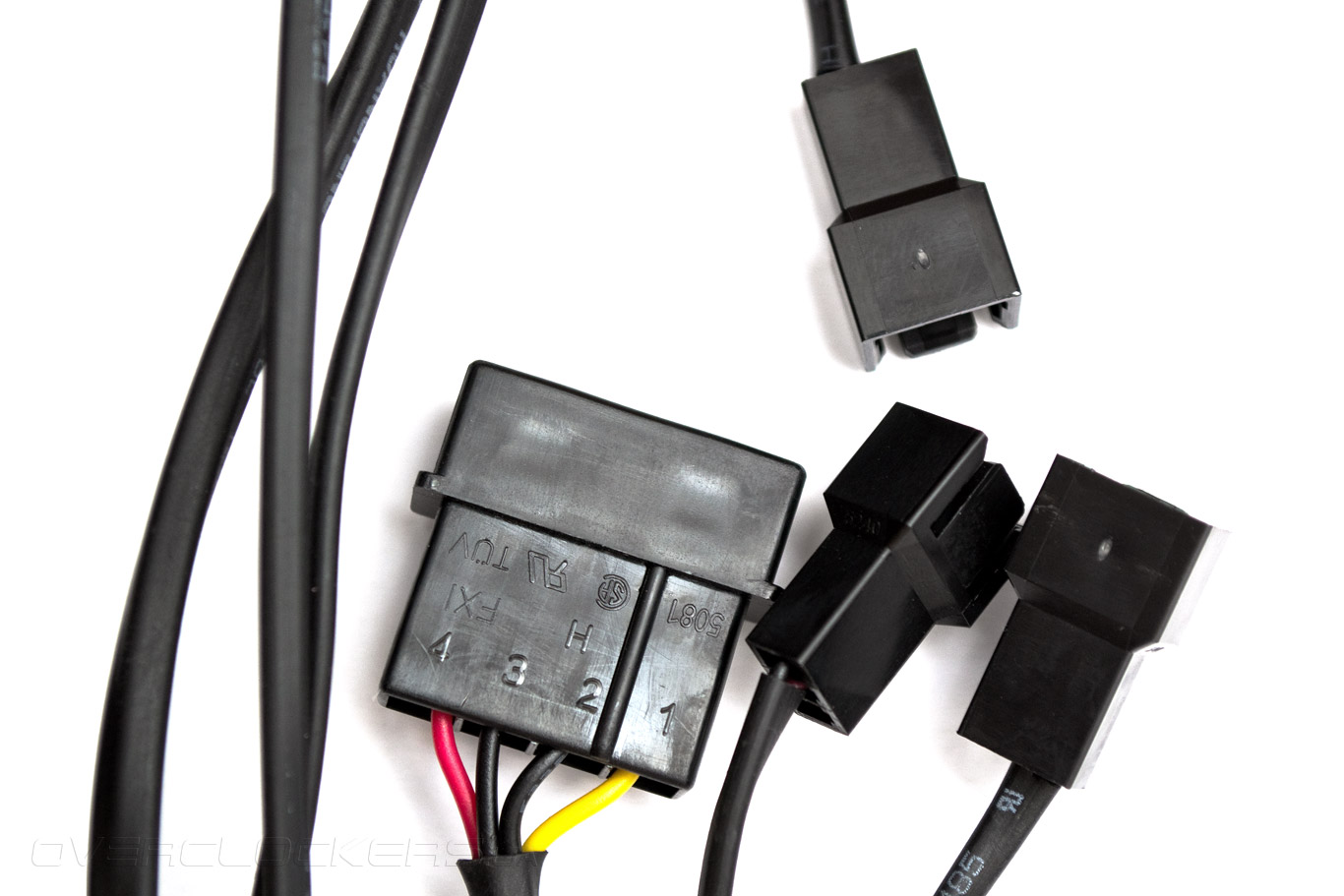 Дополнительно к обычному набору кабелей, корпус имеет один "молекс" для питания встроенного контроллера вентиляторов и три трехконтактных разъема для их подключения.
