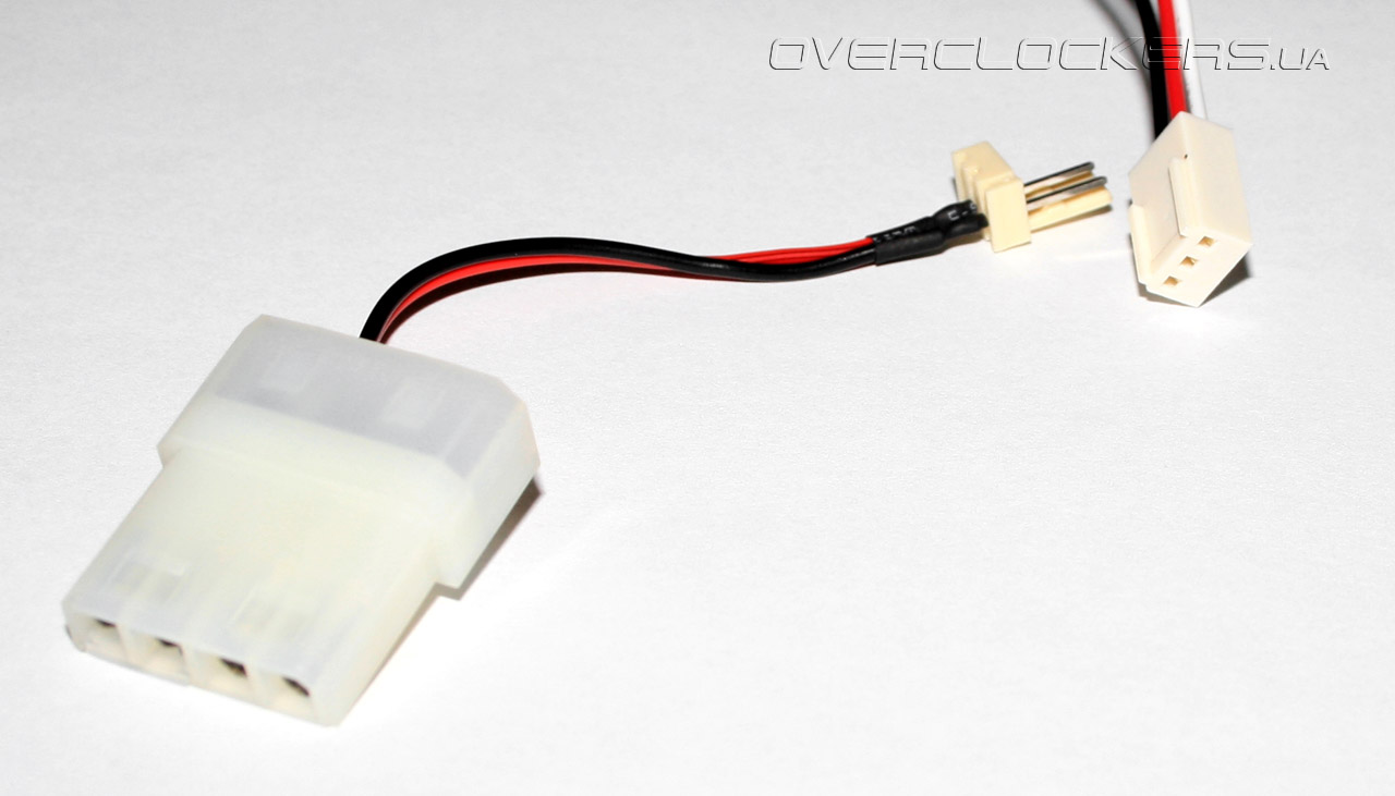 Оба вентилятора, установленные в корпусе снабжены трехконтактными разъемами питания. Также в комплекте поставки имеются два компактных переходника на Molex-разъем.