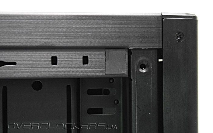 Вся верхняя часть корпуса, где будет располагаться блок питания с прилагаемым ворохом проводов, закрыта металлической панелью, которая плавно переходит в стойку для крепления 5,25” устройств. Таким образом, несмотря на явное отсутствие системы для укладки проводов, привести в визуальный порядок содержимое корпуса не составит труда.