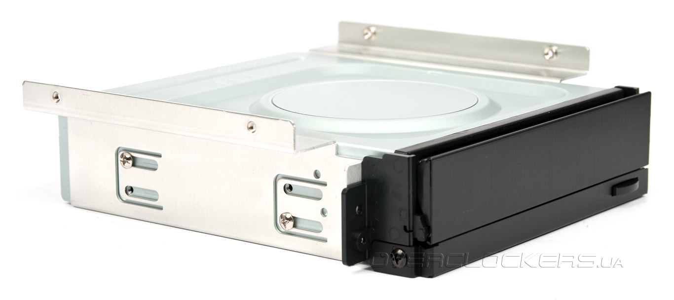 Второй этап — установка оптического дисковода. Для начала необходимо извлечь корзину с прикрученной к ней фальш-панелью и зафиксировать в ней привод.