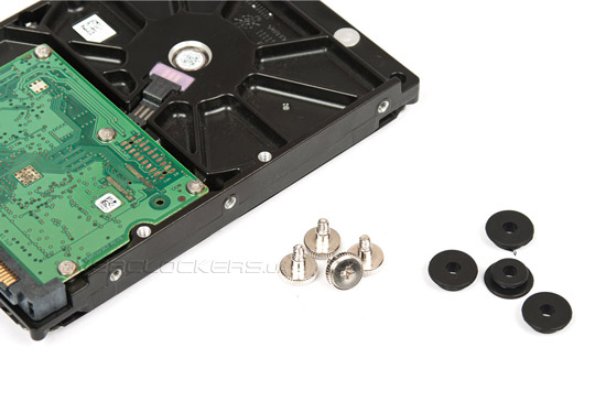 Сперва в отверстия в нижней части винчестера вкручиваются четыре винта с антивибрационными прокладками.