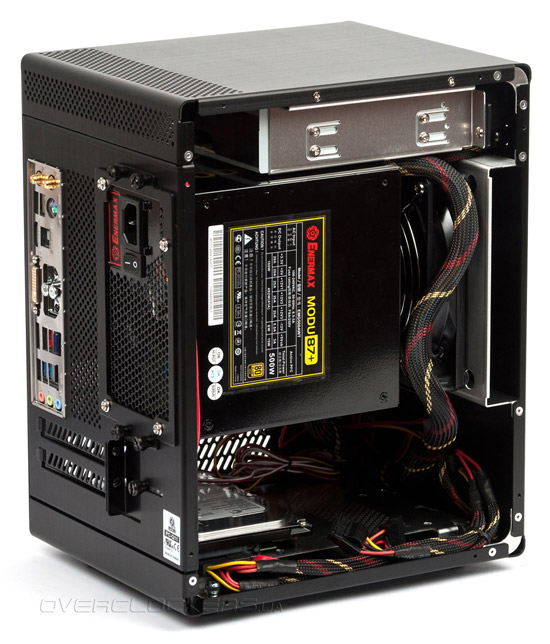 Поскольку напротив нашего тестового блока Enermax теперь нет вентиляционных отверстий в стенке корпуса (снова проводим параллель с PC-Q07), то его необходимо устанавливать только вентилятором вовнутрь, иначе бедолага попросту «задохнется» и перегреется. Интерфейсные и силовые кабели лучше укладывать аккуратно, чтобы не создавать помех движению воздуха.
