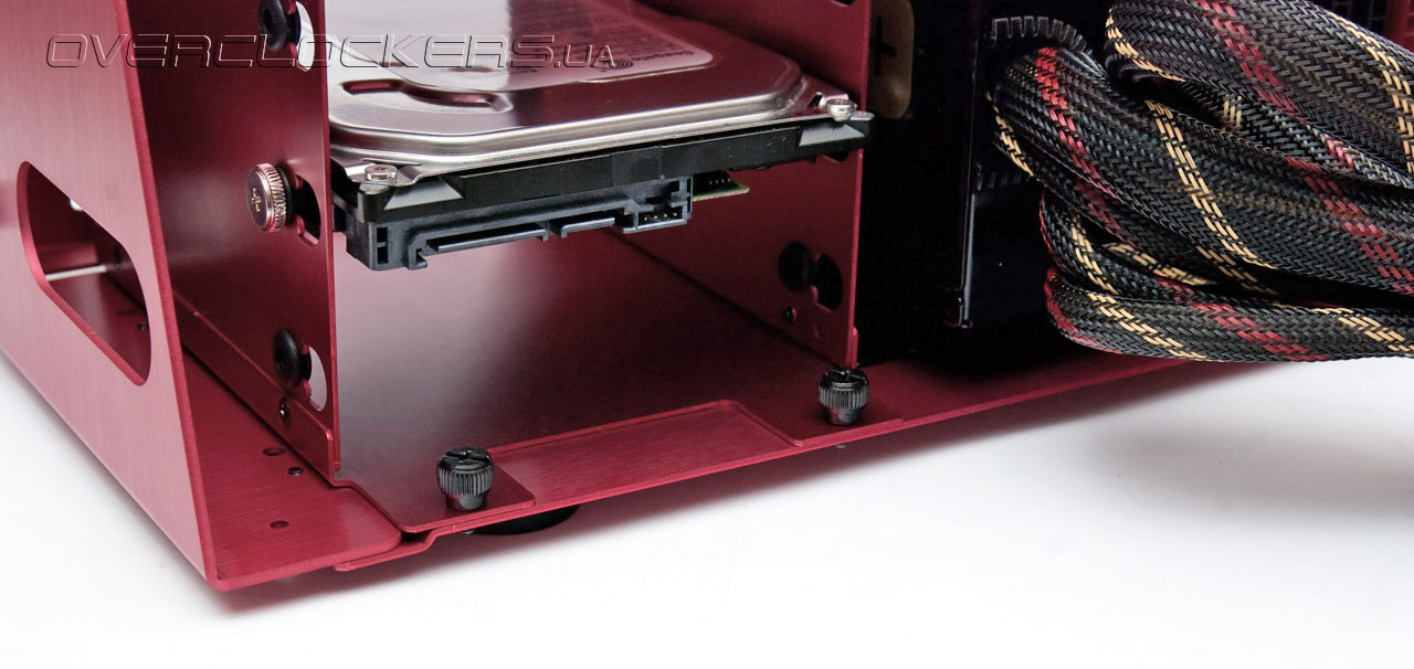 Для установки накопителей корзину необходимо предварительно собрать, не забыв установить резиновые колечки для снижения передачи вибраций от жестких дисков. Похвально, что производитель об этом не забыл, потому как вошедшие в резонанс накопители вряд ли кому понравятся в тихом режиме работы стенда.