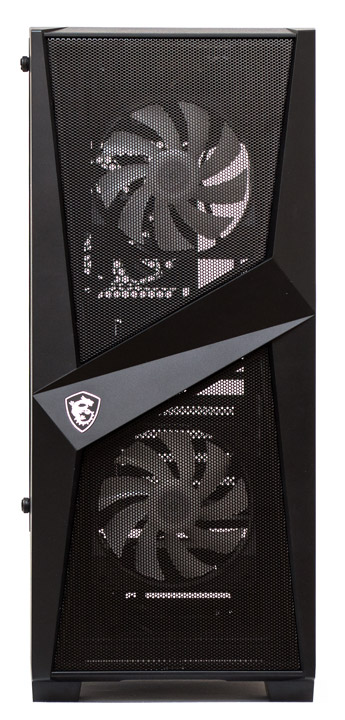 Самый простой способ как-то разнообразить внешний вид компьютерного корпуса, это придать оригинальность его фронтальной панели. И в данном случае получилось весьма неплохо. Пластиковая рамка состоит из рубленых треугольных граней, которые «отражены» зеркально в верхней и нижней части панели. А большую часть площади занимает металлическая сетка с мелкими ячейками, которая хорошо пропускает воздух. Слева посередине наклеен логотип компании.