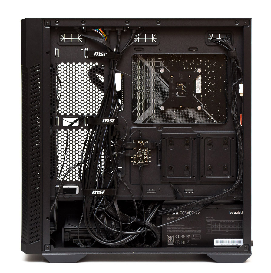 Сборка системы в корпусе MSI MPG Velox 100P Airflow производится предельно легко и не вызывает никаких замечаний. Все кабеля можно разместить за поддоном.