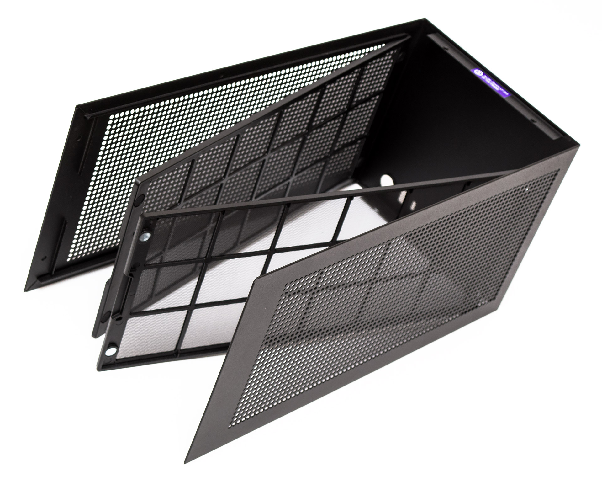 С обратной стороны боковых панелей на магнитах закреплены пылевые фильтры.