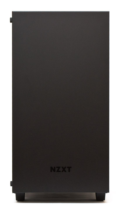 Дизайн у HZXT H400i выполнен в духе минимализма, как и у всех остальных представителей данной серии. Внешне он выглядит как ровная прямоугольная коробка черного цвета. Передняя панель сплошная и металлическая, точнее, лист металла одет поверх пластикового основания. Внизу посередине выгравирован малозаметный логотип производителя.