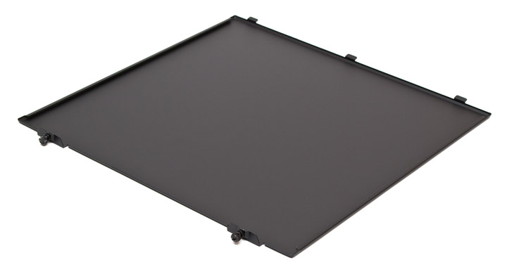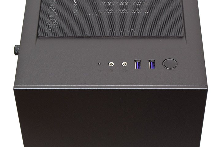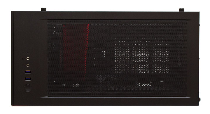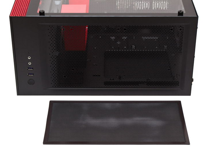Верхняя панель выполнена из металла. Большая ее часть представляет собой вентиляционную решетку, прикрытую магнитным пылевым фильтром, сделанным из металлической мелкоячеистой сеточки.