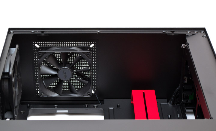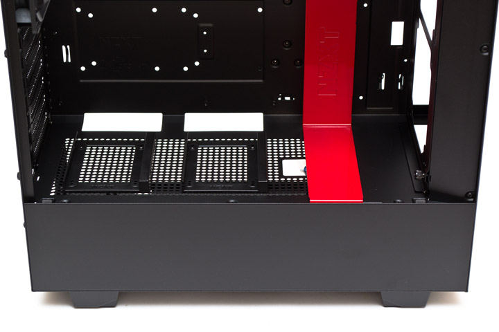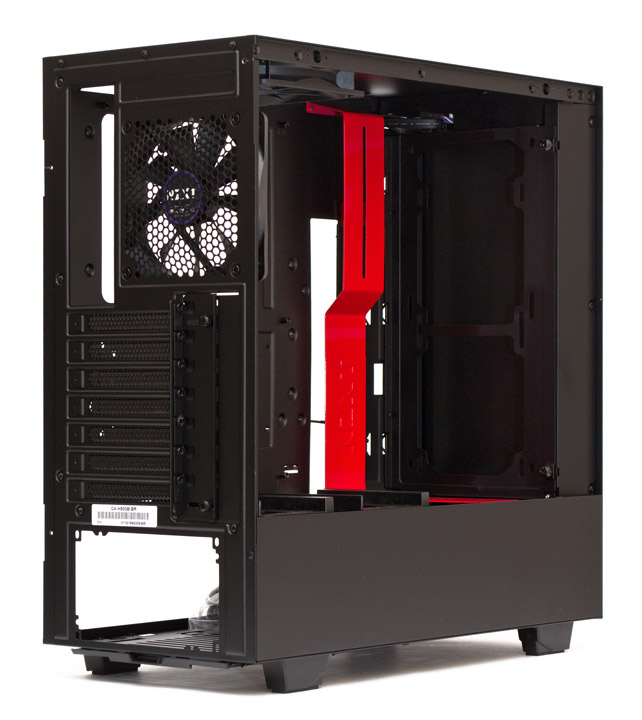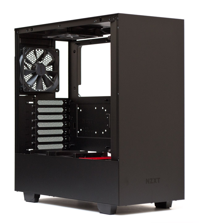 Корпус NZXT H500 поддерживает установку в вертикальном положении материнских плат формата ATX, MicroATX и Mini-ITX. Допустимая высота процессорного кулера составляет 165 мм. Возможная длина плат расширения во всех слотах равна 381 мм без передних вентиляторов. В корпус помещается блок питания длиной до 200 мм с установленной снизу корзиной накопителей. Если ее снять, то БП может быть длиной хоть в 400 мм.