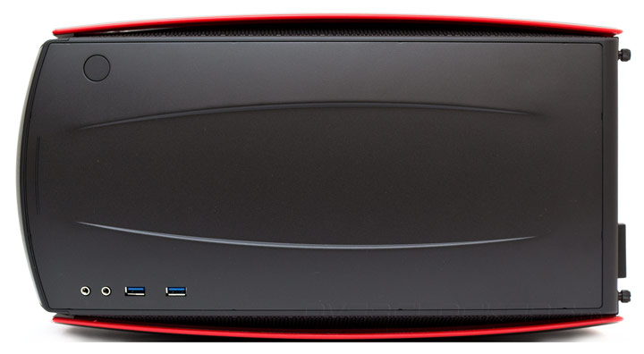 Верхняя панель сделана по тому же принципу, что и фронтальная — на пластмассовое основание надет тонкий лист металла. Сверху, помимо портов и кнопок, есть две стилизованные полоски, выполняющие декоративную роль и очерчивающие выемку по центру. Вентиляционные отверстия спрятаны в углублениях по бокам и сзади.
