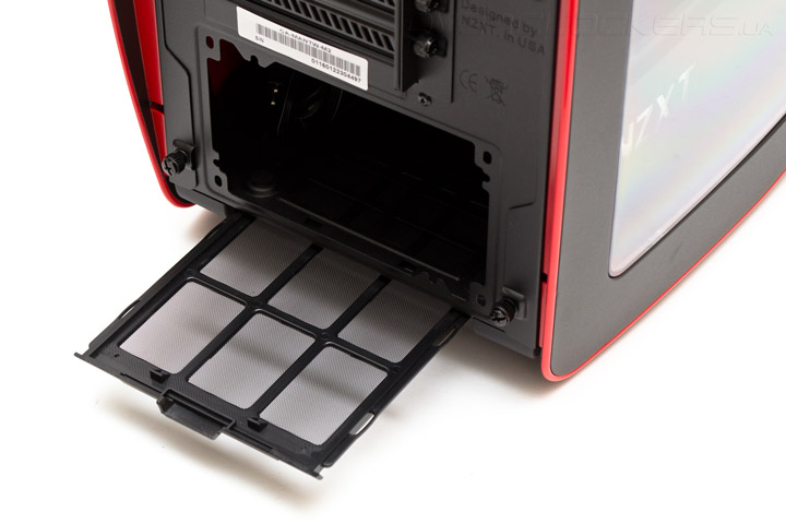 Блок питания можно ориентировать вентилятором вверх или вниз. От попадания пыли он защищен хорошим легкосъемным фильтром.