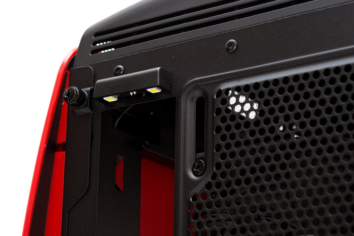 Под пластиковым козырьком, над панелью задних портов материнской платы, находится два белых светодиода. Когда они включены, то освещают тыльную сторону корпуса, облегчая подключение проводов.