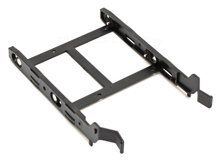 Салазки накопителей оборудованы резиновыми демпферами на креплениях и просто одеваются на 3,5″ диски. При установке 2,5″ дисков крепления придется снять и воспользоваться обычными винтами.