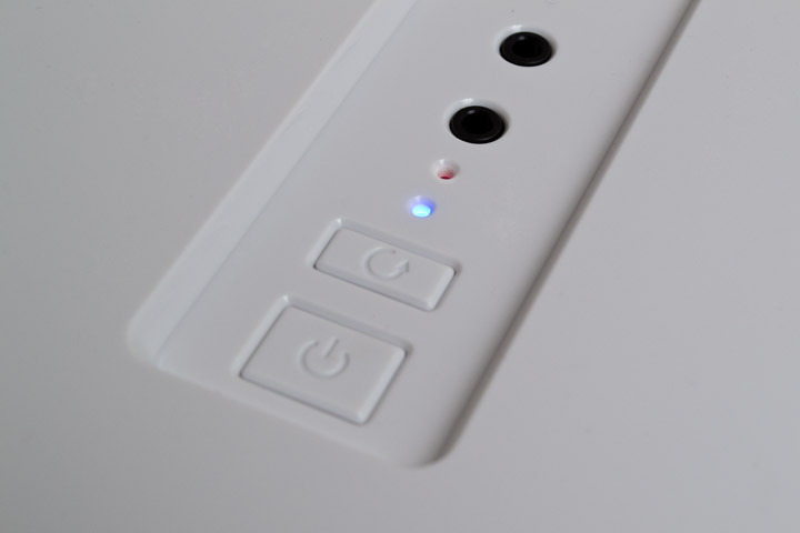 Индикаторы питания и накопителей синего и красного цвета точечные и яркие, пятна от них будут хорошо видны на потолке помещения.
