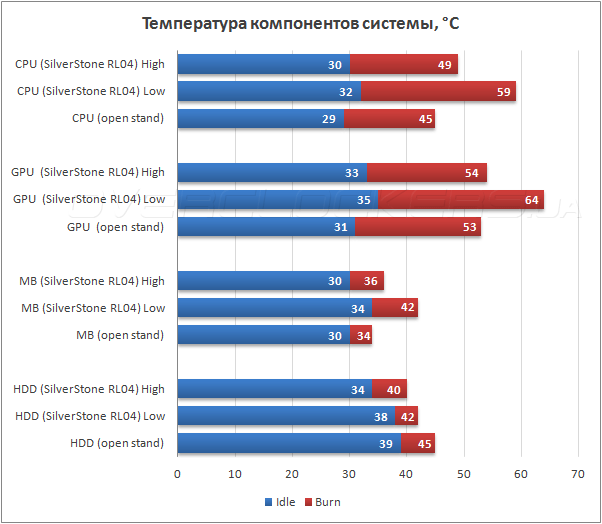 Для тестирования эффективности системы охлаждения шасси SilverStone SST-RL04B использовалась следующая тестовая конфигурация:
