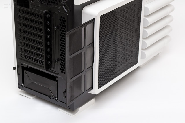 Задняя решетка легко снимается, открывая доступ к внутренностям шасси или установке под верхнюю панель вентиляторов.