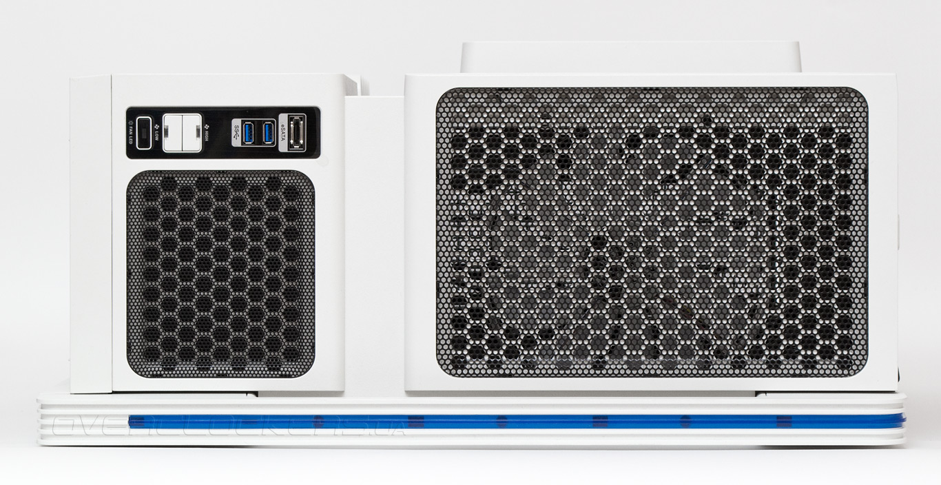 От оригинала GT получил и ручку для переноски, закрепленную на правой верхней грани. Нагружать ее полным весом системы в сборе не стоит, но придерживать при переноске и наклонять за эту рукоять корпус весьма удобно. К сожалению, синяя полоса, проходящая по ручке и правой передней кромке шасси, не снабжена подсветкой и является обычным декоративным элементом.