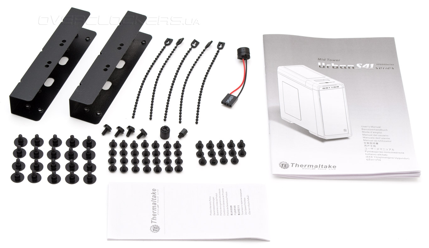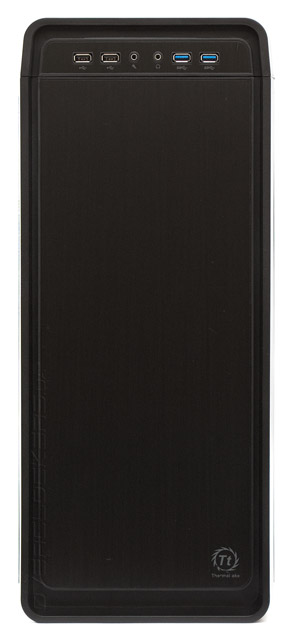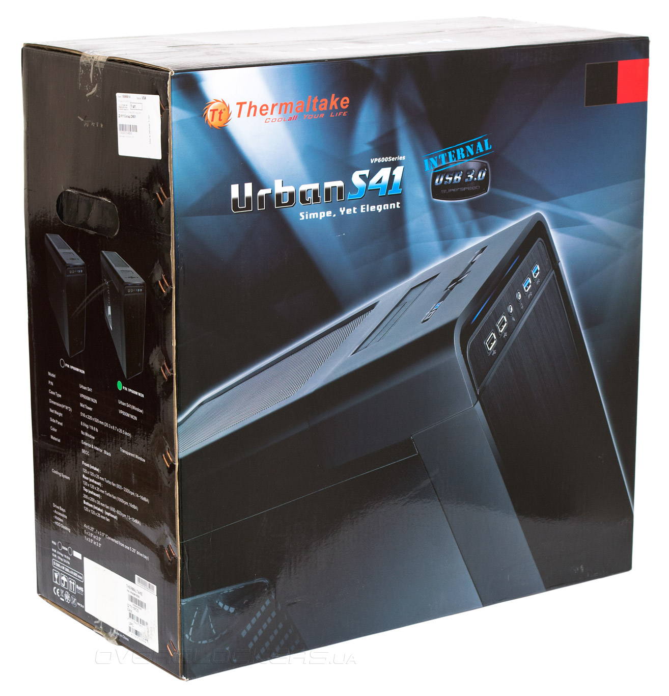 Взглянув в первый раз на внешность Thermaltake Urban S41, можно вполне согласиться с рекламным девизом на его коробке — «простой и элегантный». Несмотря на общую угловатость формы, все грани шасси скруглены пластиковыми накладками. Дизайн в целом производит приятное впечатление, которое усиливается шлифованной алюминиевой накладкой, слегка утопленной в переднюю панель. Броские элементы отсутствуют.